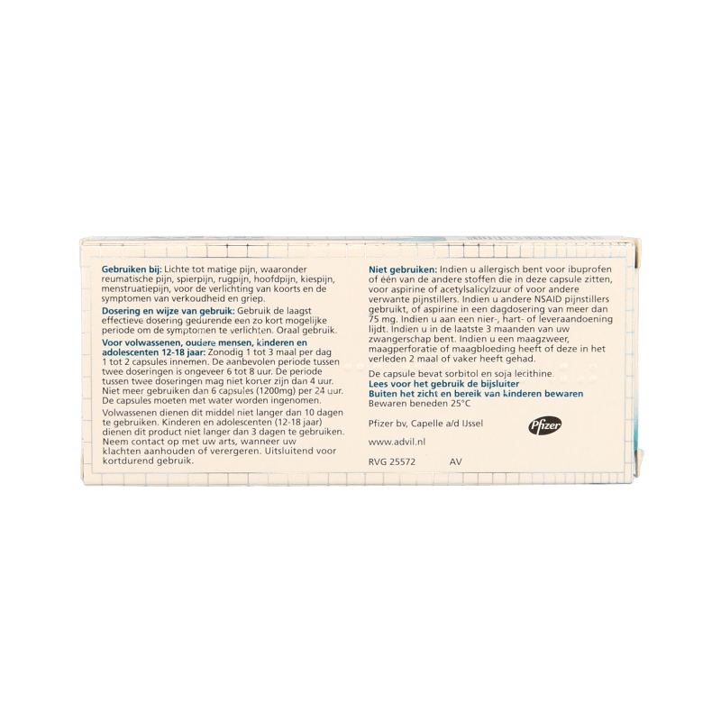 Advil Reliva Liquid-Caps is bedoeld voor de verlichting van lichte tot matige pijn, waaronder