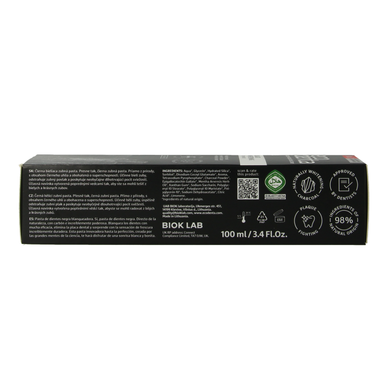 Ecodenta Tandpasta whitening houtskool extra black