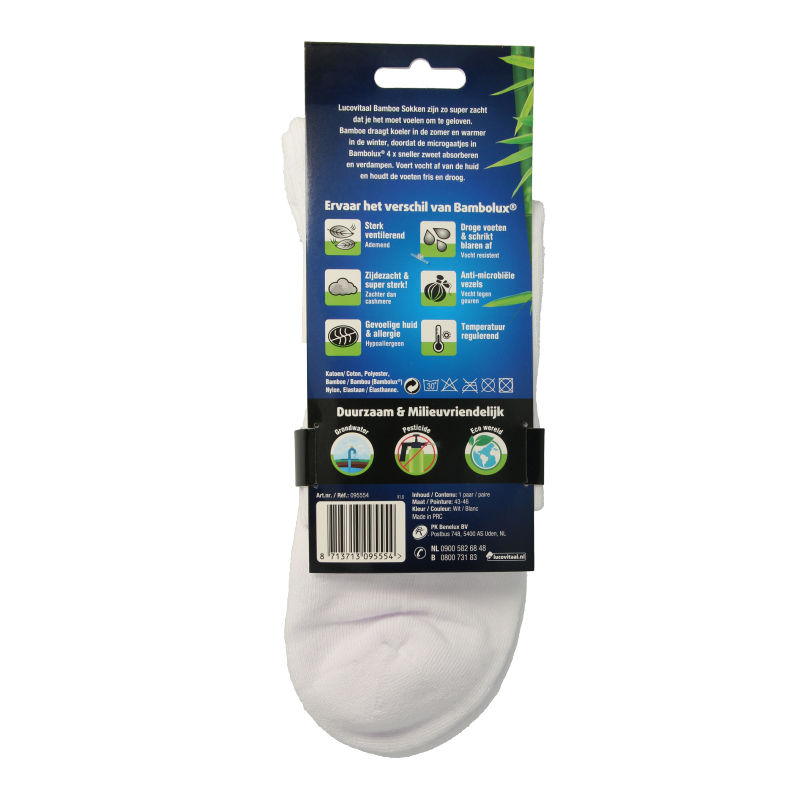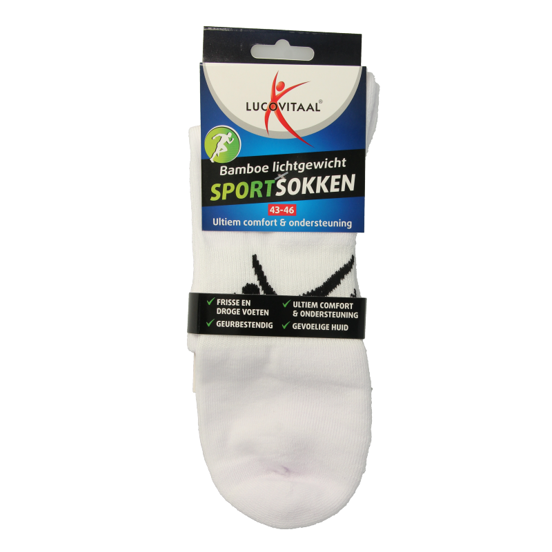 Lucovitaal Sportsok bamboe wit 43-46 1 Paar