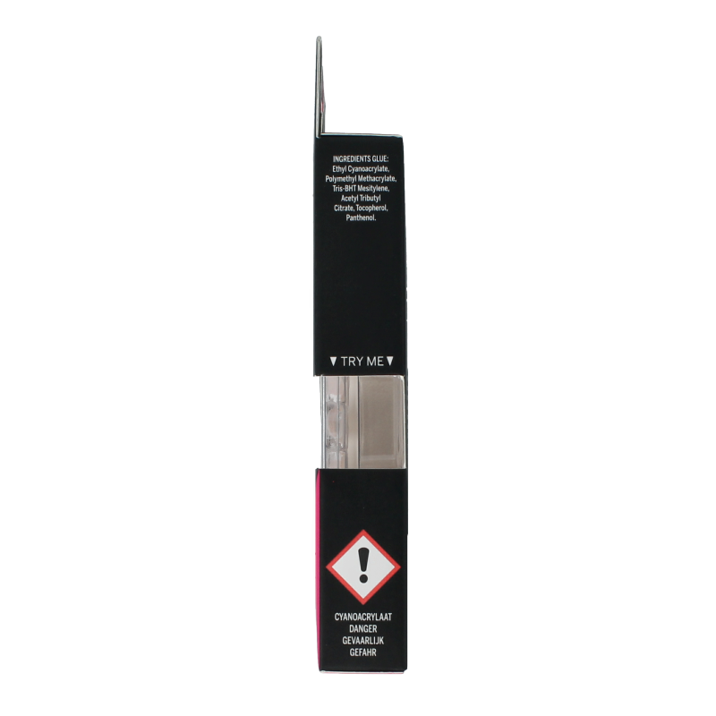 Lijm: Ethyl cyano-acrylate, Polymethyl methacrylate, Tris-BHT mesitylene, Acetyl tributyl citrate, Tocopherol, Panthenol, Red 7 (CI 15850)