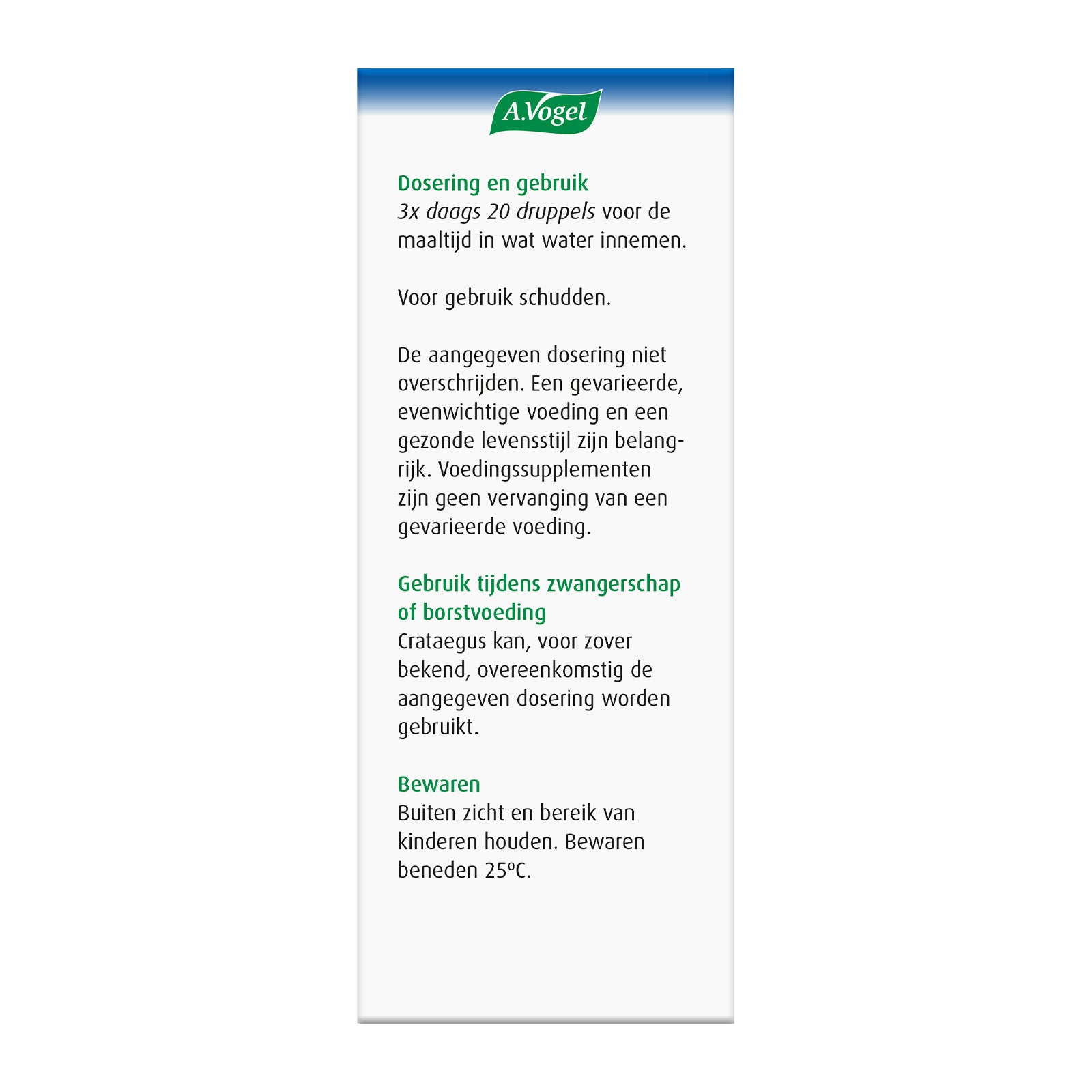 Een dagdosering van 3x20 druppels bevat de inhoudsstoffen van 2150 mg extract uit Crataegus en Valeriaan.