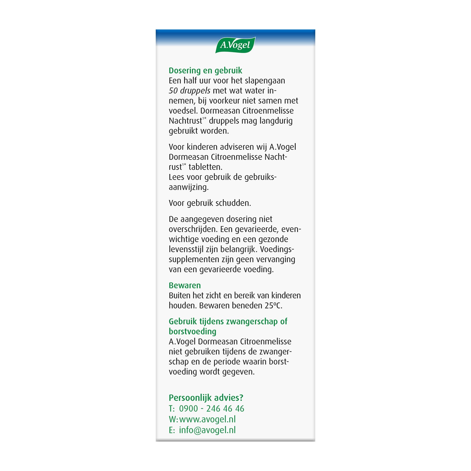 Volwassenen: Een half uur voor het slapengaan 50 druppels met wat water innemen, bij voorkeur niet samen met voedsel. Dormeasan Citroenmelisse Nachtrust druppels mag langdurig gebruikt worden.