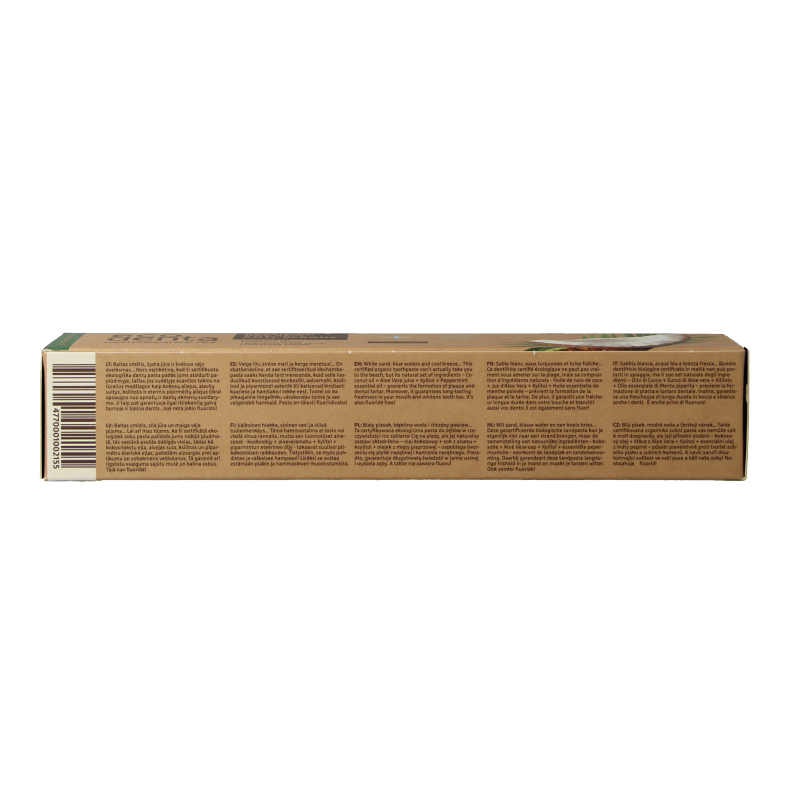 ECODENTA Anti Tandplak Tandpasta is een natuurlijke tandpasta voor de dagelijkse tandverzorging, zonder fluoride. De actief werkzame stof zinkzout heeft een antibacterieel effect en helpt nieuwe vorming van tandplak te voorkomen. Kokosolie wordt traditioneel beschouwd als een natuurlijke tand-whitener en heeft een verfrissend effect. Xylitol voorkomt tandbederf, tandvleesontsteking en gaatjes en maakt je tanden sterker. De natuurlijke ingrediënten helpen tandplak te verwijderen en voorkomen dat tandsteen wordt gevormd. Bovendien helpt het tegen een droge mond. Een gezonde tandpasta met een zachte kokos smaak en een vleugje verse pepermunt.