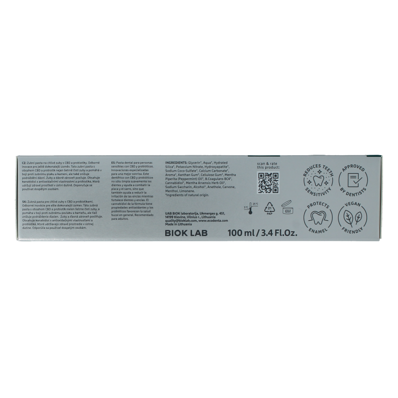 Ecodenta Tandpasta sensitive CBD probiotica expert line 100 Milliliter