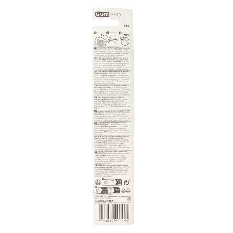 Ultradunne borstelharen reiken 7 keer dieper onder de tandvleesrand. Zachte borstelharen. Ergonomische greep ontworpen voor optimaal poetsen (hoek van 45°). Verpakking gemaakt van gerecycled karton & PET.