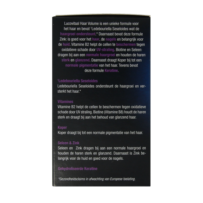 Lucovitaal Haar Volume is een unieke formule voor het haar en bevat Ledebouriella Seseloides. Daarnaast bevat deze formule onder andere Zink, Vitamine B2, Biotine, Seleen & Koper.