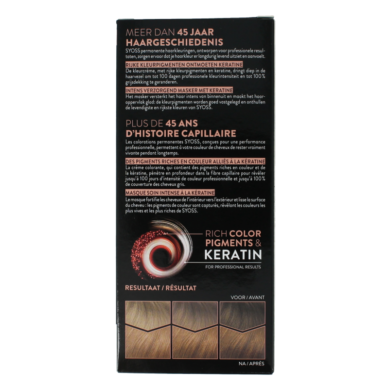 De permanente kleuringen van SYOSS zijn ontworpen voor professionele resultaten en zorgen ervoor dat uw haarkleur er langdurig levendig uitziet en aanvoelt.