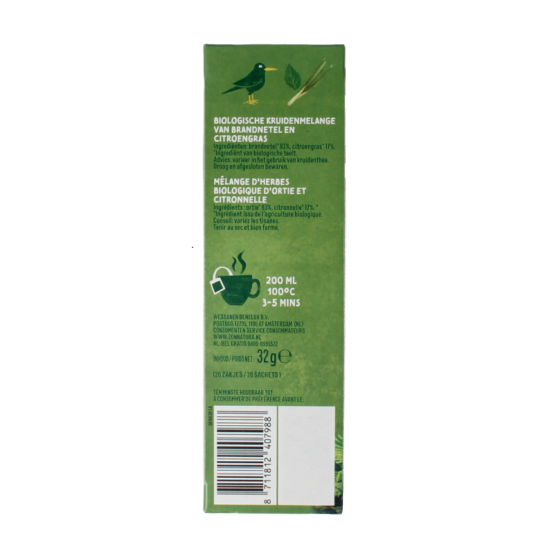 Zonnatura Brandnetel citroengras bio 20 Zakjes